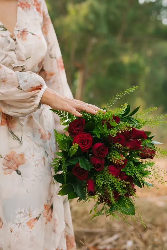 הרכב הזרים כ–15 ראשי ורדים אדומים איכותיים (הכמות המדויקת עשויה להשתנות מעט בהתאם לעונה והזמינות)